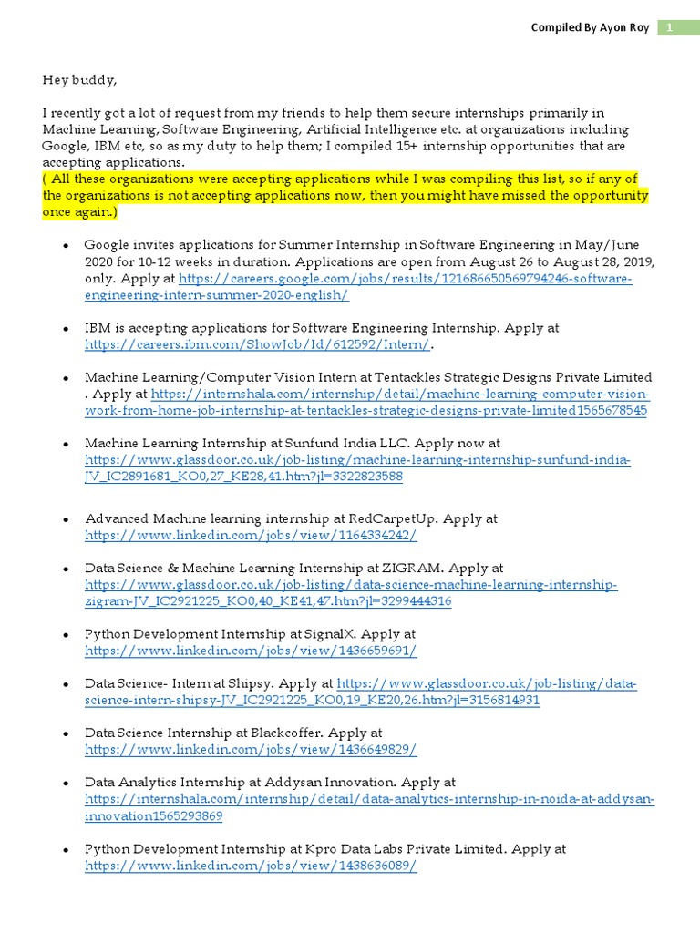 Internship Opportunities Pdf Pdf Machine Learning Artificial Intelligence